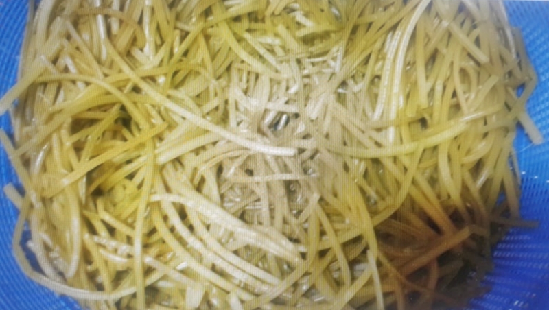 - 적당히 익었다 싶으면 소쿠리에 건져 물기를 빼주세요.