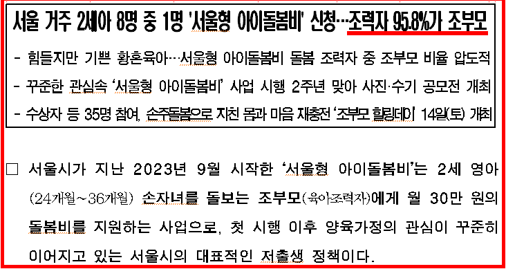 손주를 돌보는 건 사랑과 정성이 필요한 일이죠. 이런 제도를 통해 조부모님의 수고를 사회가 함께 도와준다는 의미에서 더 크게 다가옵니다