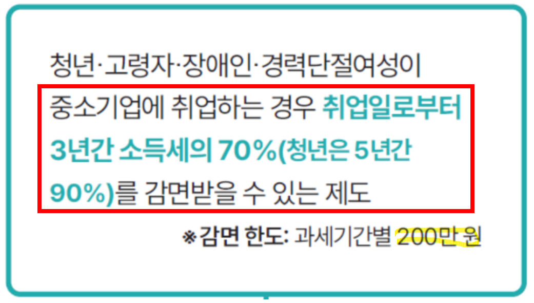 • 2023년~2026년 입사: 소득세 90% 감면, 연 최대 200만 원