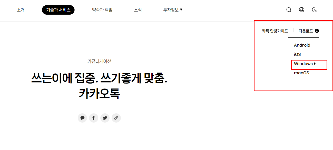 ✅ 2단계 카카오톡 공식 홈페이지 주소 확인 (검색창에 '카카오톡 PC버전' 검색)